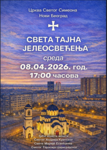 Света Тајна Јелеосвећења – 8. април 2026. у 17 часова