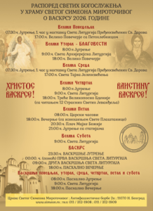 На линку доле можете погледати распоред богослужења за Васкрс 2026. године у нашем храму.